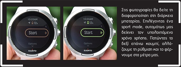Αυτή τη φορά η Suunto επέλεξε να μην ακολουθήσει τα μονοπάτια που χαράζει ο ανταγωνισμός, προσθέτοντας κάποιες πιο καθημερινές και fun λειτουργίες (μουσική, ανέπαφες πληρωμές κλπ). Αντ’ αυτού, εξέλιξε το νέο αυτό μοντέλο για να εξυπηρετήσει το βασικό πυρήνα των αθλητών αντοχής και κάθε λογής υπαίθριων δραστηριοτήτων, οι οποίοι είναι εκεί έξω για πάρα πολλές ώρες.