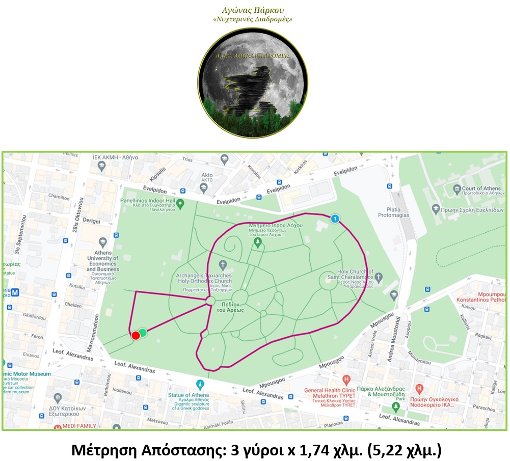 Εκκίνηση και τερματισμός εντός του χώρου του Πεδίου Άρεως. Ο Αγώνας τελεί υπό την Αιγίδα της Γ.Γ.Α., της Ελληνικής Ομοσπονδίας Συλλόγων Λαϊκού Μαζικού Αθλητισμού και Υπεραποστάσεων (ΕΟΣΛΜΑ-Υ), της Ελληνικής Αστυνομίας, της Παγκόσμιας Ομοσπονδίας Άθλησης για όλους FISpT και της Ευρωπαϊκής Ομοσπονδίας Άθλησης για όλους UESpT.