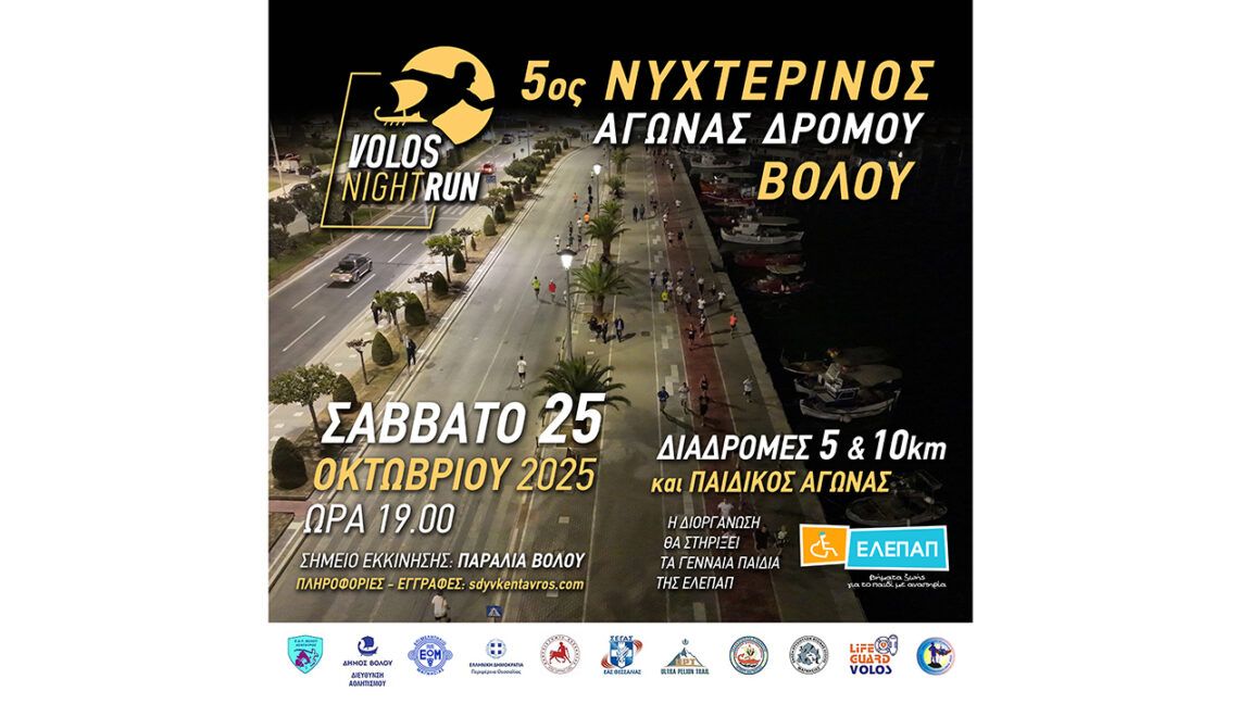 Η διοργάνωση του 5ου Νυχτερινού Αγώνα Δρόμου Βόλου – Volos Night Run μας ενημερώνει ότι ο αγώνας θα διεξαχθεί το Σάββατο 25 Οκτωβρίου.