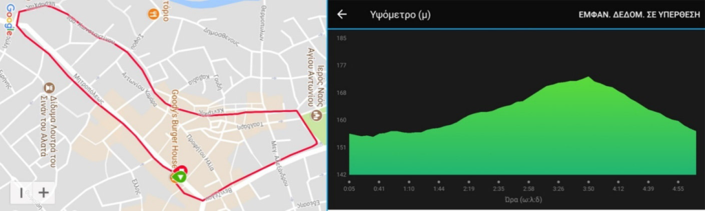 Χάρτης: 3 γύροι των 1670μ της εικονιζόμενης διαδρομής