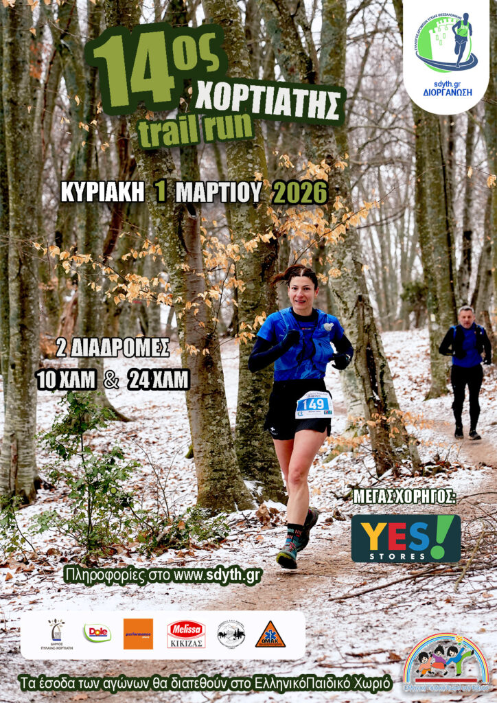 Την Κυριακή 1 Μαρτίου θα διεξαχθεί ο 14ος Χορτιάτης Trail Run. Ακολουθεί η ανακοίνωση της διοργάνωσης.