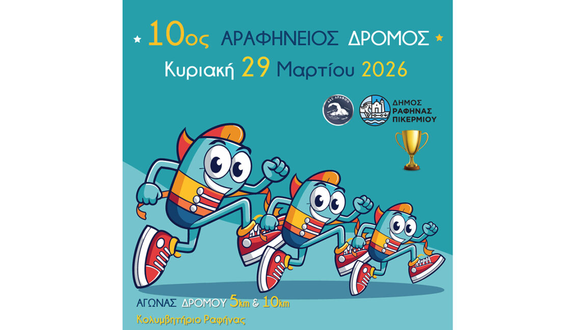 Ο Δήμος Ραφήνας – Πικερμίου και ο ΔΑΣ ΑΡΑΦΗΝ προκηρύσσουν για 10η χρονιά τη διεξαγωγή του «10ου ΑΡΑΦΗΝΕΙΟΥ ΔΡΟΜΟΥ», την Κυριακή 29 Μαρτίου 2026.