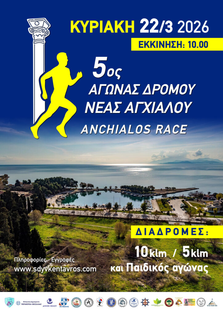 Την Κυριακή 22 Μαρτίου θα διεξαχθεί ο 5ος Αγώνας Δρόμου Ν. Αγχιάλου. Ακολουθεί η ανακοίνωση της διοργάνωσης με το άνοιγμα των εγγραφών.