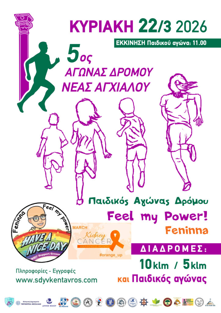 Το γραφικό λιμανάκι της Ν. Αγχιάλου ετοιμάζεται να υποδεχτεί στις 22 Μαρτίου 2026, τους δρομείς του 5ου Αγώνα Δρόμου των 10χλμ. και 5 χλμ. καθώς και του παιδικού αγώνα ” Feel my power Feninna”, που είναι αφιερωμένος στη μνήμη της 16χρονης Φενίννας Βασιλού, μαθήτριας και αθλήτριας στίβου στην Αθλητική Ακαδημία Άτλας, που έχασε τη μάχη από ένα αρκετά σπάνιο και επιθετικό τύπο καρκίνου.