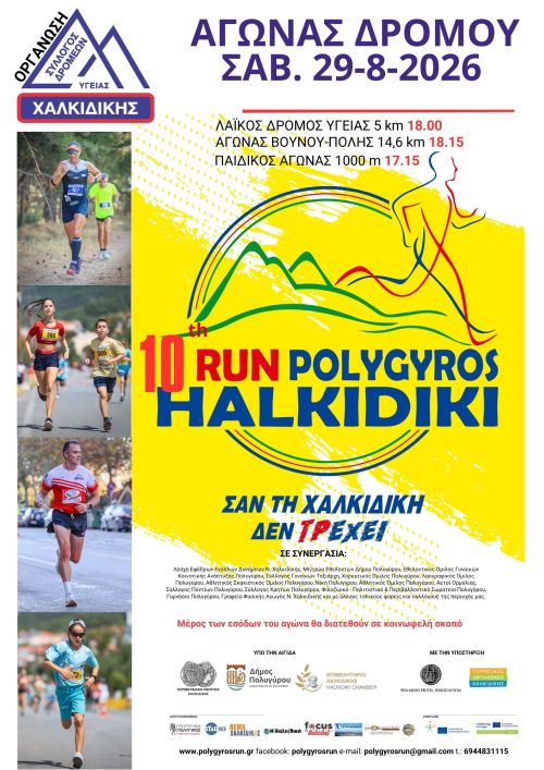 Το Σάββατο 29 Αυγούστου θα διεξαχθεί το 10ο Πολύγυρος RUN Χαλκιδική 2026. Ακολουθούν οι πληροφορίες της διοργάνωσης.