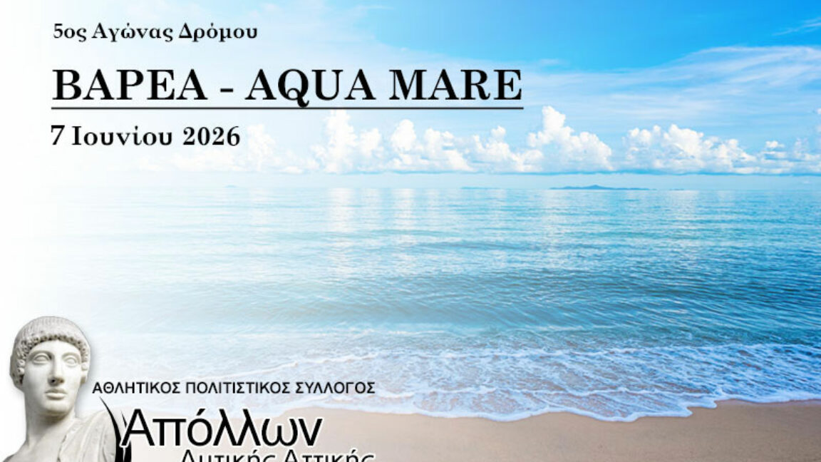 Ο ΑΠΣ ΑΠΟΛΛΩΝ ΔΥΤ ΑΤΤΙΚΗΣ προκηρύσσει τον 5ο Αγώνα Δρόμου AQUA MARE που θα πραγματοποιηθεί την ΚΥΡΙΑΚΗ 7 Ιουνίου 2026.