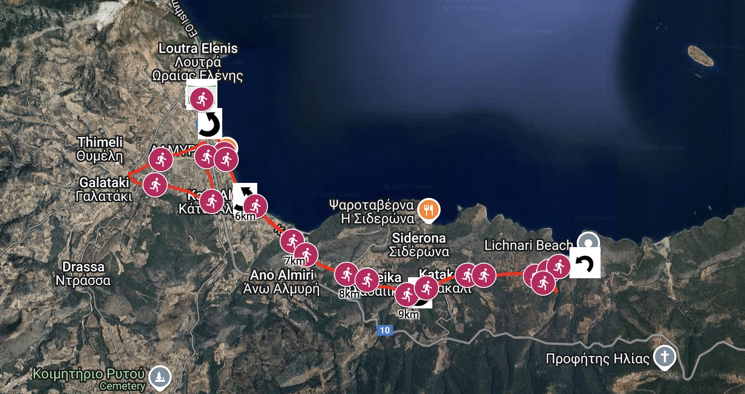Περιγραφή & Χάρτης διαδρομής: Η εκκίνηση θα δοθεί από την Προβλήτα Λουτρών Ωραίας Ελένης όπου θα γίνει και ο τερματισμός. Η διαδρομή των αγώνων είναι ασφάλτινη. Σκοπός της εκδήλωσης είναι η συμμετοχή αθλητών και αθλουμένων σε φυσική δραστηριότητα που βελτιώνει την υγεία και την ποιότητα ζωής και η ανάδειξη του φυσικού κάλους της περιοχής (όρμος Λυχναρίου).