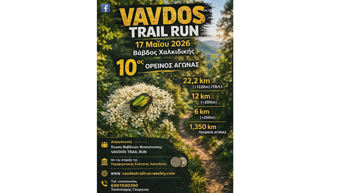Την Κυριακή 17 Μαΐου θα διεξαχθεί το Vavdos Trail Run 2026 στο Βάβδο Χαλκιδικής.