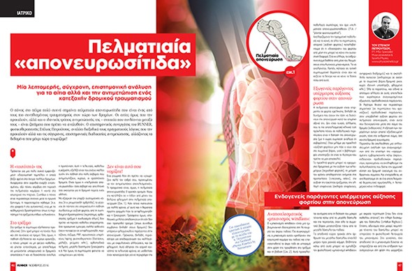 Για ένα ακόμα τεύχος ο φυσικοθεραπευτής, Στέλιος Πετρούτσoς, δίνει… ρεσιτάλ παρουσιάζοντας όλα τα τελευταία δεδομένα για την πελματιαία απονευρωσίτιδα, έναν τραυματισμό “εφιάλτη” για τους δρομείς. Μία εκτενής παρουσίαση του τραυματισμού και των μηχανισμών που τον προκαλούν, αλλά και του ιδανικού σχεδιασμού πρόληψης και αντιμετώπισης.