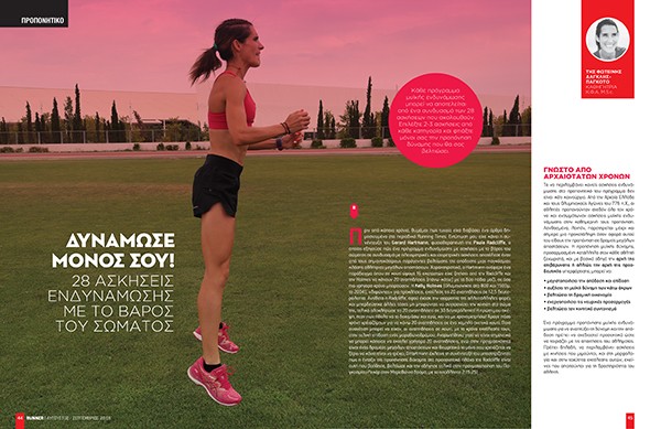 Αν ονειρεύεστε ένα δυνατό σώμα τώρα είναι η ευκαιρία να το αποκτήσετε. Η καθηγήτρια ΚΦΑ Φωτεινή Δαγκλή-Παγκότο μας δίνει τις οδηγίες για να φτιάξουμε το δικό μας πρόγραμμα, επιλέγοντας μέσα από 28 ασκήσεις ενδυνάμωσης με το βάρος του σώματος. Δείτε βήμα-βήμα πώς θα τις εκτελέσετε.