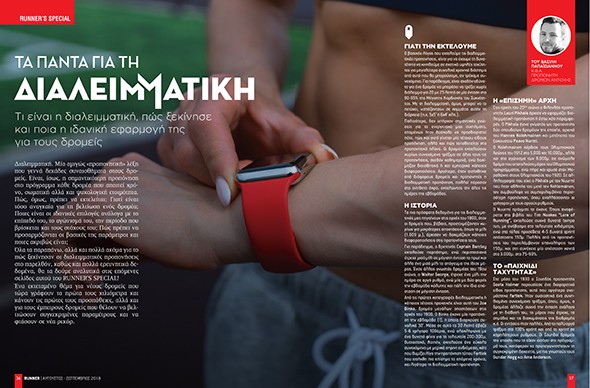 Μία κορυφαία προπόνηση πρέπει να έχει την προσοχή που της αξίζει. Έτσι και εμείς αποφασίσαμε να αφιερώσουμε στη διαλειμματική προπόνηση το πολυσέλιδο Runner’s Special. Ανακαλύψτε την ιστορία της, μάθετε τα οφέλη και τις παραμέτρους της και ακολουθείστε τις προτάσεις μας για ρεκόρ… που σπάνε.