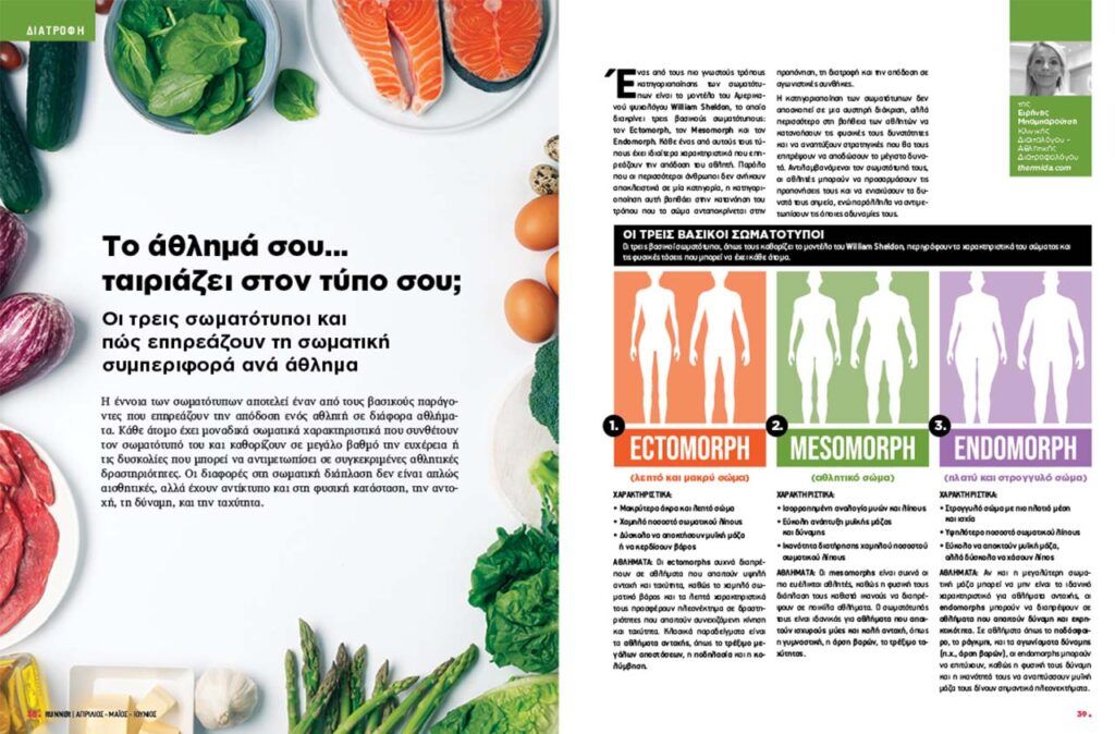 Το ήξερες ότι υπάρχουν τρεις βασικές κατηγορίες σωματότυπων; Στο διατροφικό μας θέμα που υπογράφει η Phd Κλινική Διαιτολόγος – Αθλητική διατροφολόγος, Ειρήνη Μπαμπαρούτση, θα τους μάθεις αλλά και θα ενημερωθείς για το πώς επηρεάζουν τη σωματική συμπεριφορά ανά άθλημα, καθώς και πώς θα πρέπει να ορίζουν τις διατροφικές μας συνήθειες.