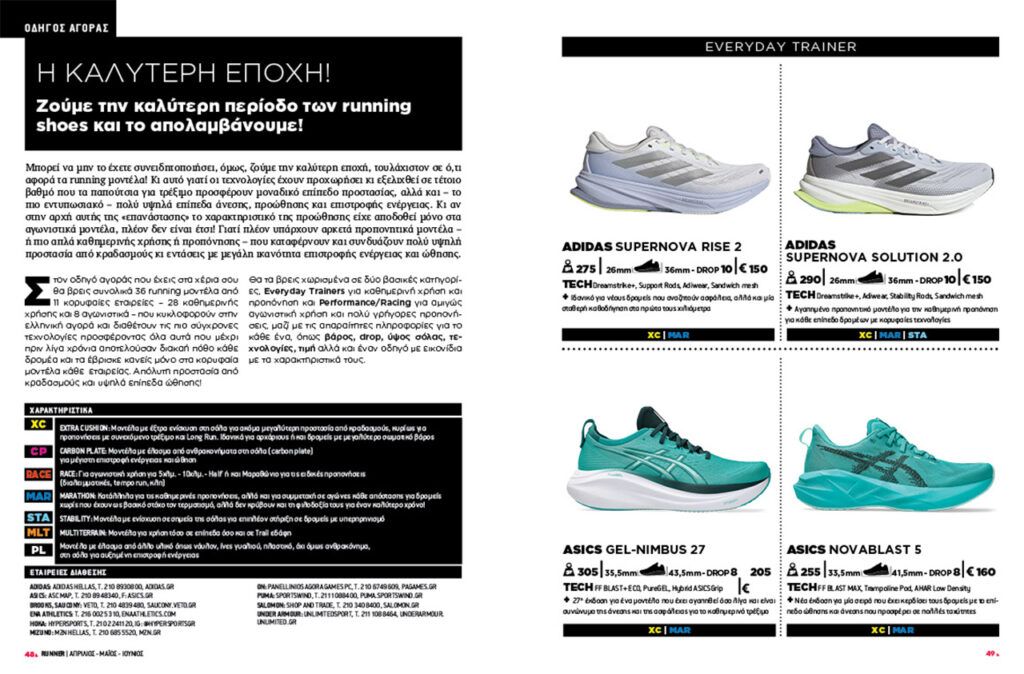 Δεν θα μπορούσε να λείπει ο Οδηγός Αγοράς που αυτή τη φορά έχει 36 κορυφαία running μοντέλα για όλους! Επιλογές για καθημερινή προπόνηση ή για αγώνες με όλα τα απαραίτητα χαρακτηριστικά και πληροφορίες για να επιλέξεις ποιο ή ποια είναι το ιδανικό ή ιδανικά για σένα!