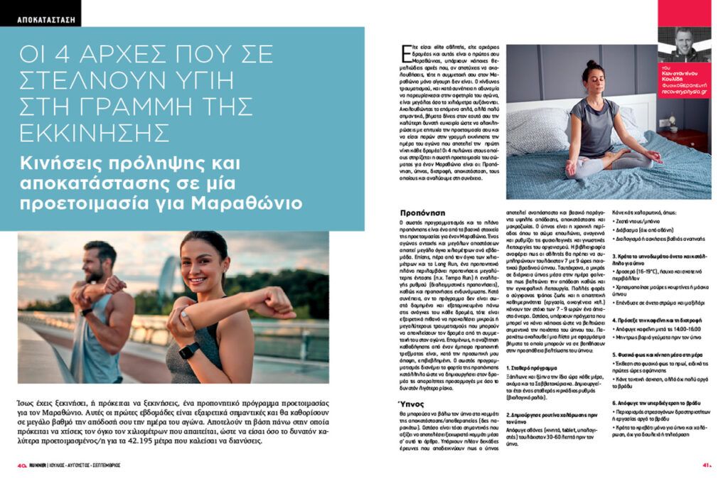 Επειδή, όμως, προετοιμασία και αποκατάσταση πάνε μαζί, ο φυσικοθεραπευτής Κώστας Κουλίδης μας έχει ετοιμάσει ένα ξεχωριστό θέμα με 4 βασικές αρχές για πρόληψη και αποκατάσταση σε μία προετοιμασία!