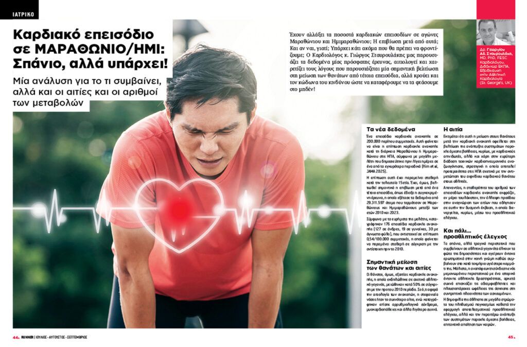 Με τη βοήθεια του Αθλητικού Καρδιολόγου, Γεώργιου Σταυρουλάκη μαθαίνουμε για την εμφάνιση των καρδιακών επεισοδίων σε Μαραθώνιο και Ημιμαραθώνιο, πώς έχουν διαφοροποιηθεί με τα χρόνια, αλλά και πώς προλαμβάνονται!