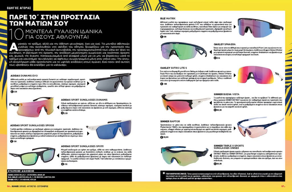 Κι επειδή το καλοκαίρι έχει τα δικά του gagdet, στο RUNNER 146 θα βρεις δύο οδηγούς αγοράς με 14 σετ ρούχων για τρέξιμο, αλλά και τα κορυφαία δρομικά γυαλιά της αγοράς!