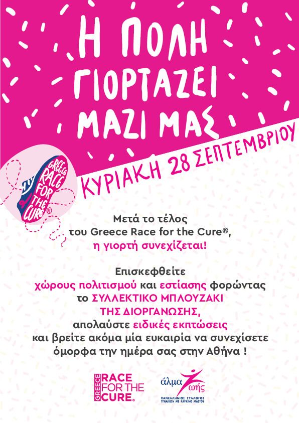 Την Κυριακή 28 Σεπτεμβρίου, το Greece Race for the Cure® μάς φέρνει για 17η χρονιά κοντά, για έναν κοινό σκοπό: τον αγώνα ενάντια στον καρκίνο του μαστού.
