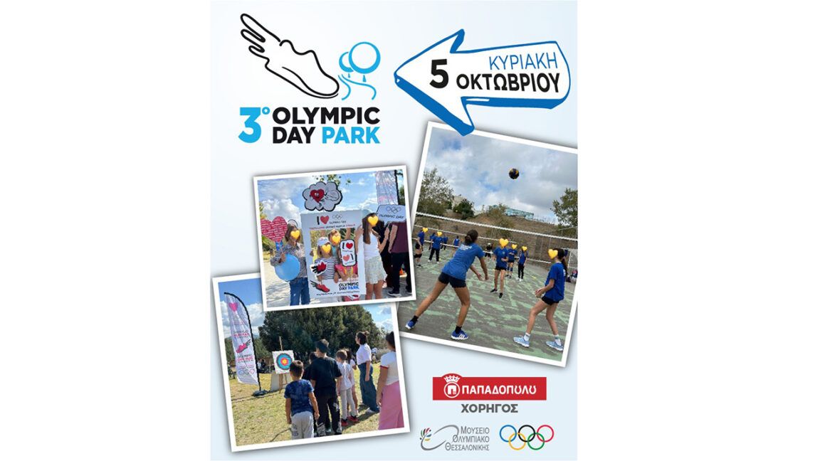 Το 3ο “Olympic Day Park”, το καινοτόμο φεστιβάλ αθλητικών, πολιτιστικών και περιβαλλοντικών δράσεων επιστρέφει πιο ζωντανό και πιο πολύχρωμο από ποτέ, με στόχο να εμπνεύσει μικρούς και μεγάλους να κινηθούν, να δημιουργήσουν και να γνωρίσουν τον κόσμο του Ολυμπισμού μέσα από μια μοναδική εμπειρία! Με κεντρικούς άξονες την αθλητική δραστηριότητα, την περιβαλλοντική ευαισθητοποίηση και την κοινωνική υπευθυνότητα, το φεστιβάλ θεσμός εμπνέεται από τις αρχές της Ολυμπιακής Ατζέντας 2020+5 της Διεθνούς Ολυμπιακής Επιτροπής (ΔΟΕ) και προσκαλεί ολόκληρη την οικογένεια σε ένα διασκεδαστικό “Ολυμπιακό” ταξίδι!