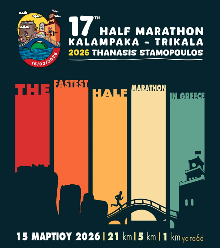 Ο Σύλλογος Δρομέων Τρικάλων προκηρύσσει τον 17ο Ημιμαραθώνιο Δρόμο Καλαμπάκα-Τρίκαλα Θανάσης Σταμόπουλος, για την Κυριακή 15 Μαρτίου 2026.