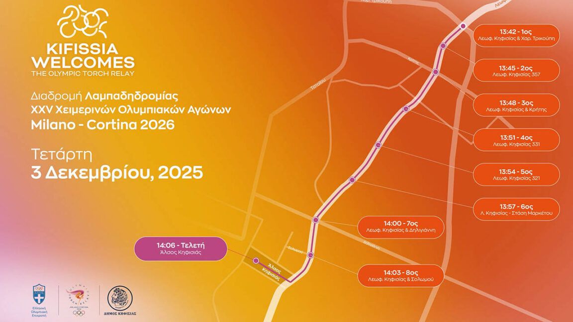 Η Κηφισιά ετοιμάζεται στις 3 Δεκεμβρίου 2025 (ώρα 12.00-15.00) να ζήσει μία εξαιρετικά τιμητική στιγμή. Η Ολυμπιακή Φλόγα, παγκόσμιο σύμβολο ειρήνης, ενότητας και διαχρονικής συνέχειας του Ολυμπιακού Ιδεώδους, φτάνει στην πόλη μας μεταφέροντας το μήνυμα των Χειμερινών Ολυμπιακών Αγώνων “Milano – Cortina 2026”.