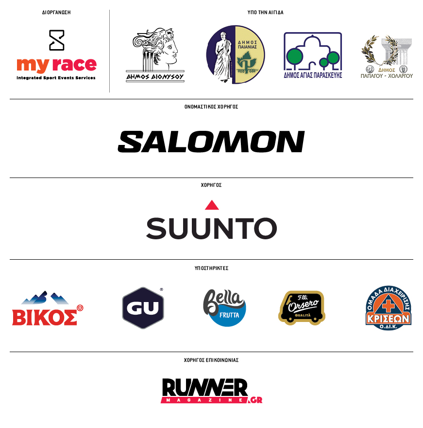 Η Salomon είναι υπερήφανος Ονομαστικός Χορηγός του αγώνα και στηρίζει όλους τους αθλητές που θα συμμετέχουν στις διαδρομές. Τέσσερις τυχεροί από κάθε αγώνα θα κερδίζουν μετά από κλήρωση ένα ζευγάρι παπούτσια Salomon, ενώ δικαίωμα συμμετοχής στην κλήρωση θα έχουν όλοι οι δρομείς που θα πάρουν εκκίνηση σε κάποια από τις δύο αποστάσεις.