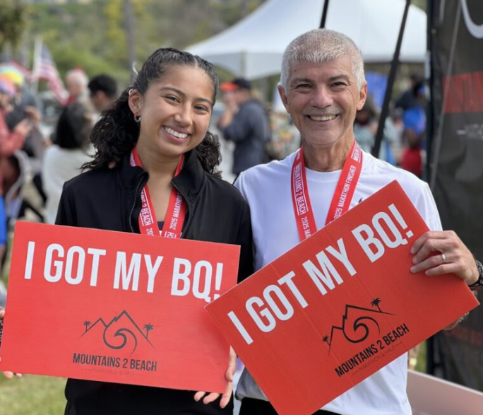 Η Mia, η οποία ήταν αθλήτρια στίβου στο Πανεπιστήμιο, τα πήγε περίφημα τον περασμένο Απρίλιο στον Μαραθώνιο Mountains 2 Beach στην Καλιφόρνια πετυχαίνοντας 3:14:26 – το όριο για την W18-34 είναι 3:25:00 – ενώ ο Carlos στον ίδιο αγώνα σημείωσε 3:50;49, ενώ λίγο αργότερα σε αγώνα στην Αλάσκα τερμάτισε σε 3:50:19.