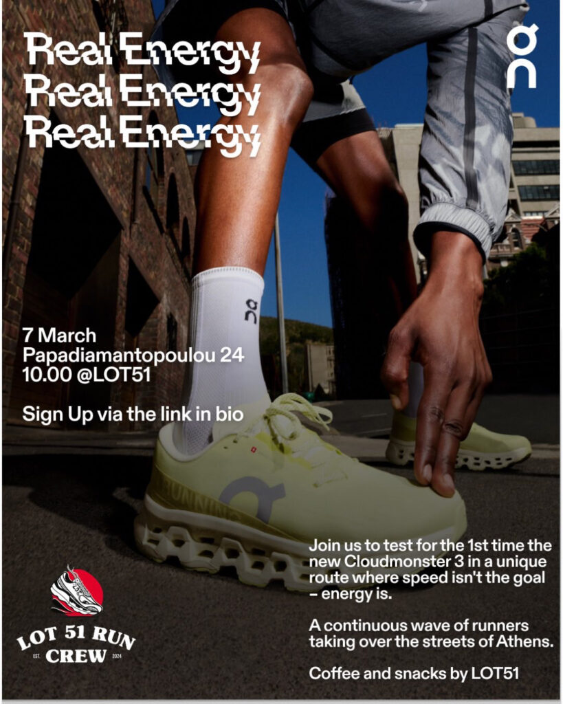 Το πρώτο μας kick-off community run θα πραγματοποιηθεί το ερχόμενο Σάββατο 7/3 στις 10:00 στο Lot51 (Papadiamantopoulou 24Β, Athina 115 28) σε συνεργασία με το Lot51 Run Crew. Δήλωση συμμετοχής εδώ