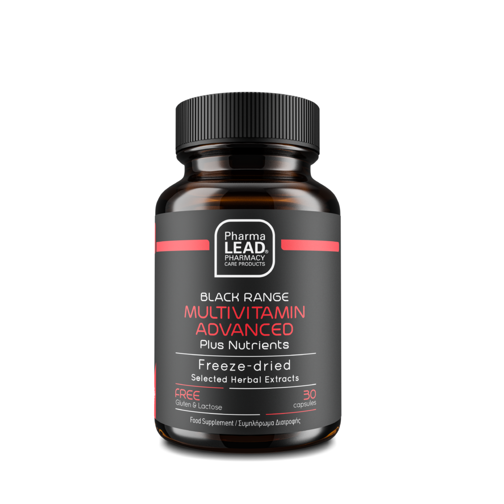 • Black Range Multivitamin Advanced: πολυβιταμίνη για υποστήριξη του σύγχρονου, απαιτητικού τρόπου ζωής εμπλουτισμένη με συνένζυμο Q10, γλουταθειόνη, εσπεριδίνη, λουτεΐνη, χολίνη, ινοσιτόλη και πρωτεΐνη σόγιας
