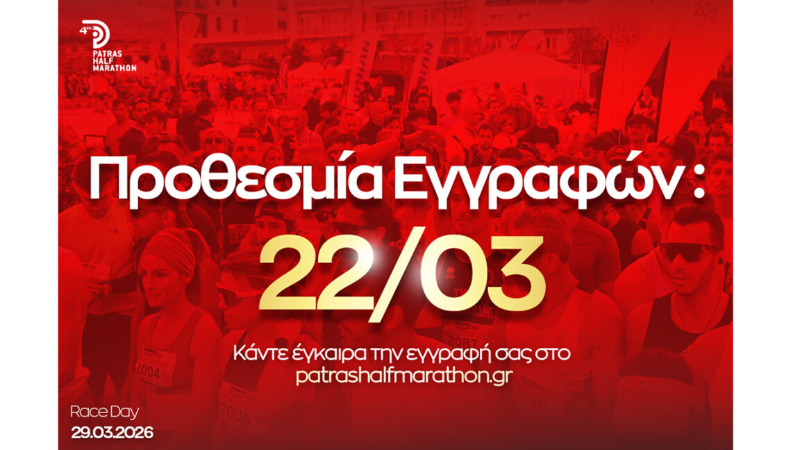 Οι εγγραφές ολοκληρώνονται την Κυριακή 22 Μαρτίου στις 23:59, μέσω της επίσημης ιστοσελίδας της διοργάνωσης: www.patrashalfmarathon.gr