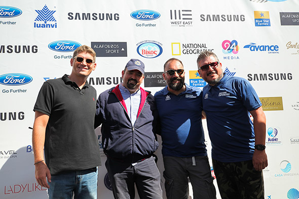 Από αριστερά: Σπύρος Γιαννιώτης αργυρός Ολυμπιονίκης, Νίκος Κανακάρης εκπρόσωπος Ένωσης Λεμβούχων Σαντορίνης, Νίκος Γέμελος Ομοσπονδιακός Τεχνικός Κολύμβησης, Άκης Τσόλης Διευθύνων Σύμβουλος Active Media Group (photo by Danijela Bogdanovic)