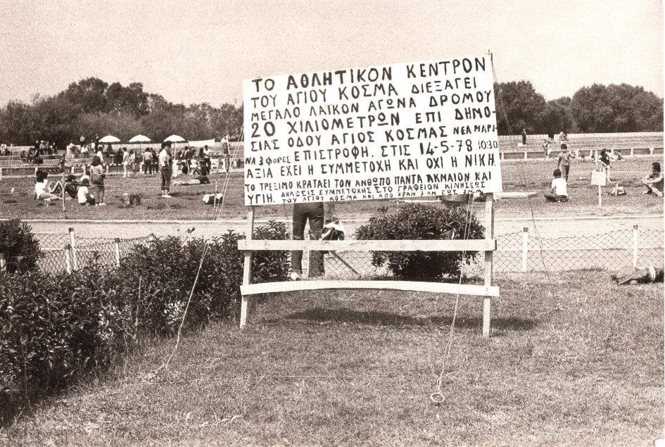 Στις 14/5/1978 στο αθλητικό κέντρο του Αγίου Κοσμά, διοργανώθηκε από μία ομάδα δρομέων με πολύ μεράκι και αγάπη για το τρέξιμο, ο πρώτος Αγώνας Δρόμου Υγείας 20χλμ. με μήνυμα “Αξία έχει η συμμετοχή και όχι η νίκη”. Λίγο αργότερα δημιουργήθηκε από την ομάδα αυτή, ο πρώτος σύλλογος δρομέων της χώρας, ο Σύλλογος Δρομέων Υγείας Αθήνας ο οποίος πήρε τη σκυτάλη συνεχίζοντας με επιτυχία την προσπάθεια διάδοσης του τρεξίματος και ενημέρωσης σχετικά με τα  οφέλη που αυτό προσφέρει.