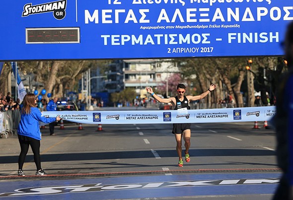 Στο Μαραθώνιο δρόμο των 42,195 χλμ. θριάμβευσε ο αθλητής του διοργανωτή ΜΕΑΣ ΤΡΙΤΩΝ Θεσσαλονίκης Μιχάλης Παρμάκης, ο οποίος πέρασε την αψίδα του τερματισμού στη Λεωφόρο Μεγάλου Αλεξάνδρου, στο ύψος του Αγάλματος του Μακεδόνα στρατηλάτη, με χρόνο 2 ώρες 28:12 τρέχοντας με τη Volkswagen Running Team. Στο βάθρο τον ακολούθησε ο Κυριάκος Συμιριώτης (2 ώρες 29:20), επίσης της Volkswagen Running Team, ενώ την τριάδα των νικητών συμπλήρωσε ο Ιλίρ Κελέζι από την Αλβανία (2 ώρες 35:11).