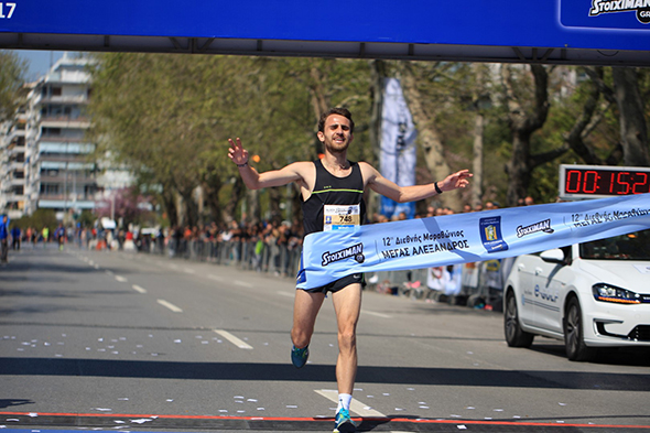 Στο Μαραθώνιο δρόμο των 42,195 χλμ. θριάμβευσε ο αθλητής του διοργανωτή ΜΕΑΣ ΤΡΙΤΩΝ Θεσσαλονίκης Μιχάλης Παρμάκης, ο οποίος πέρασε την αψίδα του τερματισμού στη Λεωφόρο Μεγάλου Αλεξάνδρου, στο ύψος του Αγάλματος του Μακεδόνα στρατηλάτη, με χρόνο 2 ώρες 28:12 τρέχοντας με τη Volkswagen Running Team. Στο βάθρο τον ακολούθησε ο Κυριάκος Συμιριώτης (2 ώρες 29:20), επίσης της Volkswagen Running Team, ενώ την τριάδα των νικητών συμπλήρωσε ο Ιλίρ Κελέζι από την Αλβανία (2 ώρες 35:11).