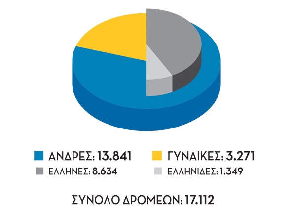 Ο 34ος Αυθεντικός Μαραθώνιος Αθήνας με αριθμούς Γραφικές αναπαραστάσεις για την αναλογία ανδρών – γυναικών και Ελλήνων και ξένων δρομέων στον Μαραθώνιο, τις χώρες απ’ όπου προέρχονται οι φετινοί συμμετέχοντες καθώς και τον αριθμό ανά ηλικιακή κατηγορία. 12 Οκτωβρίου 2017 του Runner