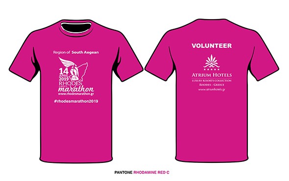 Τα Atrium Hotels θα παρέχουν και το πολύ όμορφο t shirt των εθελοντών σε φούξια χρώμα που θα χρωματίσει και αυτό το πολύχρωμο ποτάμι των δρομέων που θα πλημμυρίσει τη Ρόδο, την Κυριακή 14 Απριλίου.