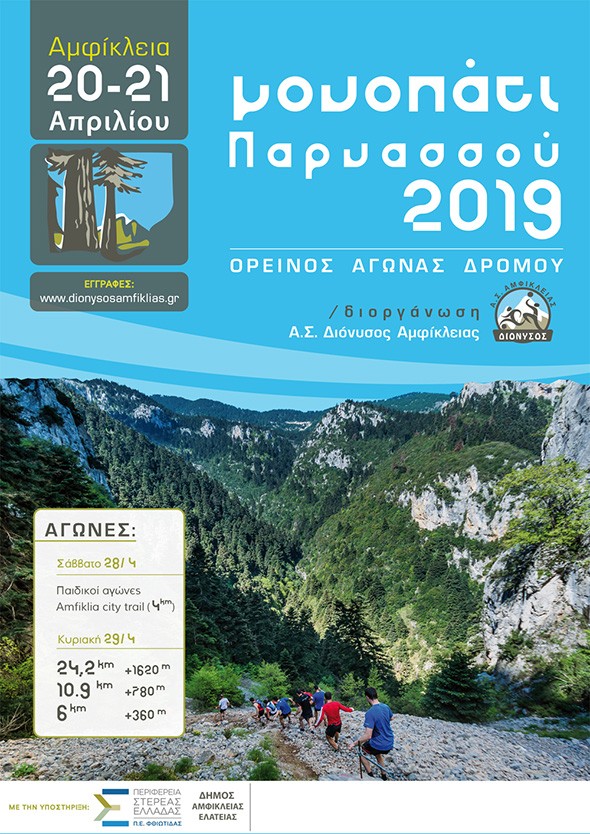 Ενώ απομένει λιγότερο από μήνας για τη διεξαγωγή των αγώνων «Μονοπάτι Παρνασσού 2019», συνεχίζονται κανονικά οι εγγραφές όπως και η προετοιμασία της διοργάνωσης. Οι δηλώσεις συμμετοχής γίνονται μέσω της ιστοσελίδας του διοργανωτή συλλόγου http://dionysosamfiklias.gr/ και θα διαρκέσουν μέχρι και την Τετάρτη 10 Απριλίου 2019.