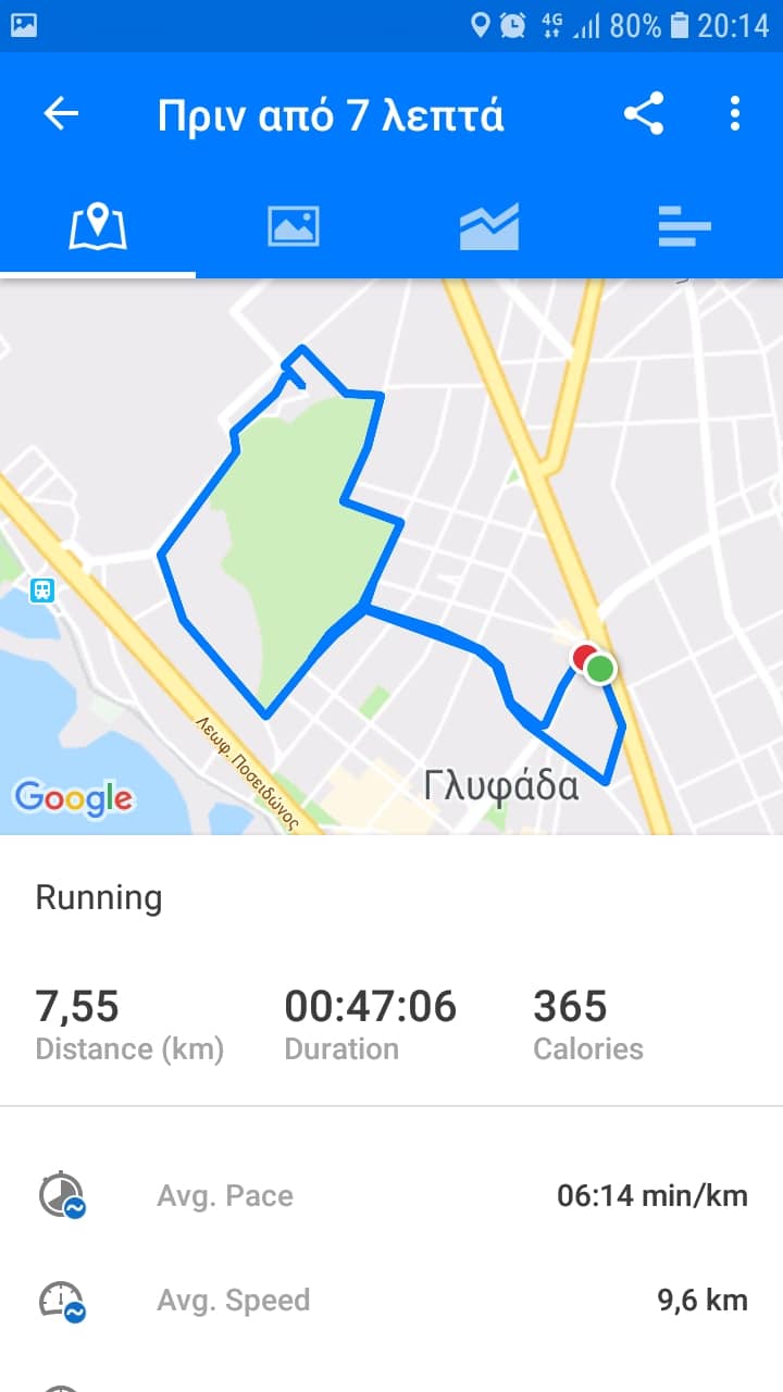 Ολοκληρώσαμε έναν κύκλο γύρω από το “Γκολφ” και επιστρέψαμε στο κατάστημα. Ο ρυθμός μας ήταν “γλυκός” κι έτσι η προπόνηση βγήκε πραγματικά ευχάριστα. Σε αυτό βοήθησε και η κουβέντα με αρκετά από τα παιδιά της ομάδας. Oι περισσότερες κουβέντες περιστράφηκαν γύρω από το τρέξιμο, πράγμα που δεν μας χάλασε καθόλου… Το ρολόι μας και το app έγραψαν κάτι παραπάνω από 7χλμ. που πέρασαν πραγματικά πολύ γρήγορα! Όπως το υποσχέθηκαν ήταν ένα Easy Run που όμως γέμισε το δρομικό μας ημερολογία αθροίζοντας κάμποσα χιλιομετράκια!