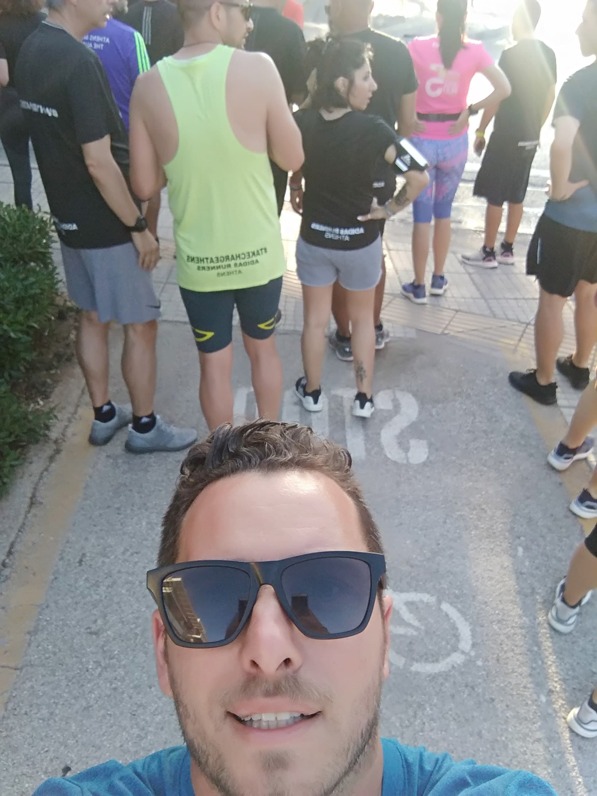 Φτάσαμε στην ώρα μας μαζί με άλλους runners που είχαν αρχίσει να μαζεύονται. Οι περισσότεροι γνωστοί μεταξύ τους, “σταθεροί” στις προπονήσεις της ομάδας. Τα παιδιά των adidas Runners Athens ανέλαβαν γρήγορα να παραλάβουν τα πράγματα μας ώστε να τα φυλάξουν στη διάρκεια της προπόνησης, ενώ στους πρωτάρηδες μας πρότειναν να κατεβάσουμε την εφαρμογή Runtastic Running App για να καταγράψουμε την προπόνησή μας.