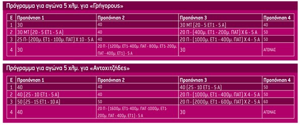 – Την 4η εβδομάδα η προπόνηση 2 θα πρέπει να γίνεται τουλάχιστον τρεις ημέρες πριν από τον αγώνα.