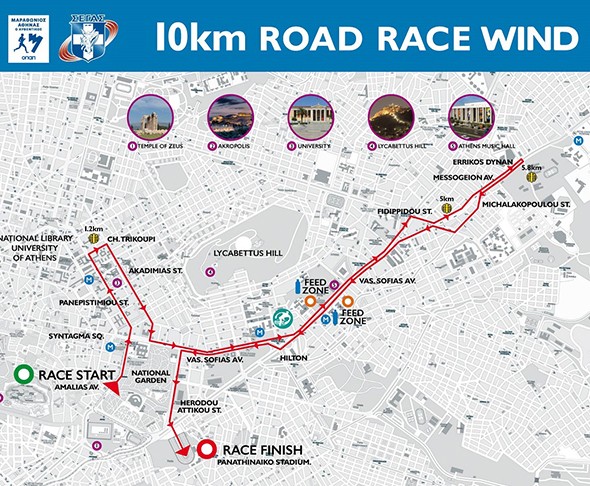 Το 10αρι μιας και είναι μεγαλύτερη απόσταση απαιτεί και μεγαλύτερο σεβασμό. Έτσι, θα πρέπει να είστε αρκετά συγκρατημένοι για τα πρώτα 5-7 χλμ. και με το δεδομένο ότι το πρώτο πεντάρι είναι συνολικά ανηφορικό. Τρέξτε μέχρι εκείνο το σημείο χωρίς να έχετε λαχανιάσει, ενώ αν ρίξετε λίγο τον ρυθμό σας μέχρι να πέσει λιγάκι η καρδιακή σας συχνότητα. Στα τελευταία 2-3 χλμ. (από το ύψος του Χίλτον και μετά) η επιλογή αν θα ανεβάσετε τον ρυθμό ή όχι είναι δική σας και εξαρτάται από τον βαθμό που θέλετε να πιεστείτε και τον τρόπο που θέλετε να βιώσετε τον αγώνα αλλά και από το αν αισθάνεστε δυνατοί. Τα τελευταία μέτρα μέσα στο Στάδιο όσο κουρασμένοι κι αν αισθάνεστε να είστε σίγουροι πως θα βρείτε τις απαιτούμενες δυνάμεις για να περάσετε κι εσείς τη γραμμή του τερματισμού. Τέλος, να θυμάστε ότι στον αγώνα θα υπάρχουν δύο σταθμοί υδροδοσίας στη διαδρομή ο πρώτος λίγο πριν τα 5 χλμ. και ο δεύτερος στα 7,5 χλμ.
