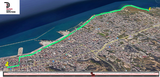 Περιγραφή της διαδρομής: Επίπεδη διαδρομή απόστασης 5 χλμ. που κινείται σε τμήμα της διαδρομής του Ημιμαραθώνιου.