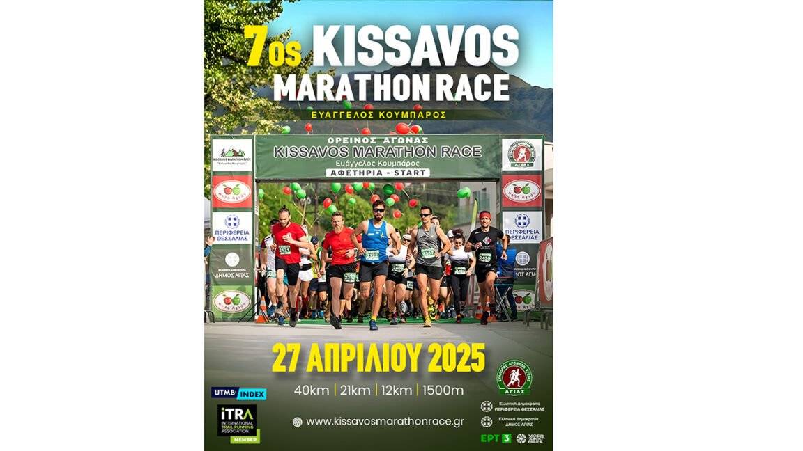 Ξεκίνησαν οι εγγραφές για τον αγώνα Kissavos Marathon Race 2025 «Ευάγγελος Κουμπάρος» που θα διεξαχθεί την Κυριακή 27 Απριλίου 2025 στην Αγιά Λάρισας.