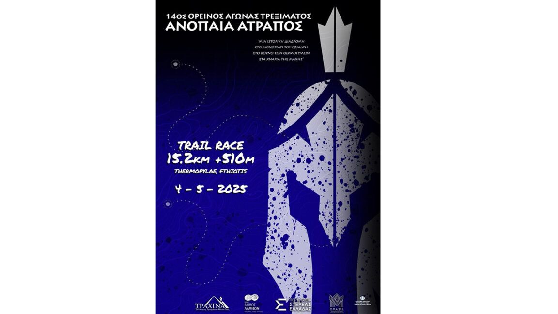 Ο Σύλλογος Δρομέων Φθιώτιδας «Τραχίνα», μέλος της ΕΟΣΛΜΑ-Υ, προκηρύσσει τον 14o Ορεινό Αγώνα Τρεξίματος 15,2χλμ. με την ονομασία «Ανόπαια Ατραπός». Ο αγώνας θα γίνει την Κυριακή 4 Μαΐου 2025 σε μονοπάτια του ελατοσκέπαστου όρους Καλλίδρομου.