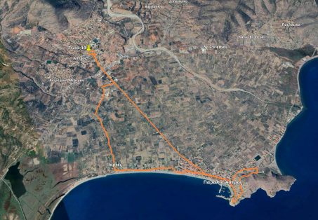 Στα 3,5χλμ φτάνουμε την παραλία στην περιοχή Πόρτες και στρίβουμε αριστερά