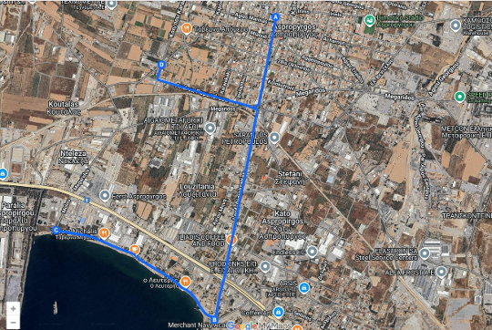 Αγώνας 10 χλμ.: Εκκίνηση από την πλατεία Δημαρχείου (σημείο Α). Κατεύθυνση προς τη θάλασσα επί της Λ. Δημοκρατίας. Στο τελείωμά της (σημείο Β), στρίβουμε δεξιά και συνεχίζουμε επί της παραλιακής οδού. Στο τέλος της (σημείο C) κάνουμε αναστροφή και επιστρέφουμε με κατεύθυνση προς την Λ. Δημοκρατίας. Κάνουμε αριστερά (σημείο Β) και ανηφορίζουμε μέχρι τον κυκλικό κόμβο στη διασταύρωση με την Α. Παπανδρέου, όπου στρίβουμε αριστερά και κινούμαστε επί της Α. Παπανδρέου. Στο τέλος της στρίβουμε δεξιά, κινούμενοι επί της οδού Κ. Καραμανλή και στη συμβολή της με την Κυπρίων Αγωνιστών (σημείο D), κάνουμε αναστροφή. Συνεχίζουμε ξανά επί της Α. Παπανδρέου και στον κόμβο με την Λ. Δημοκρατίας, στρίβουμε αριστερά, μέχρι την πλατεία Δημαρχείου όπου είναι ο τερματισμός(σημείο A).