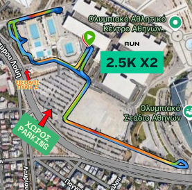 Αγώνας δρόμου 5 χιλιομέτρων στο Parking των εγκαταστάσεως του ΟΑΚΑ Σάββατο 20 Σεπτεμβρίου 2025 και ώρα 18:30.