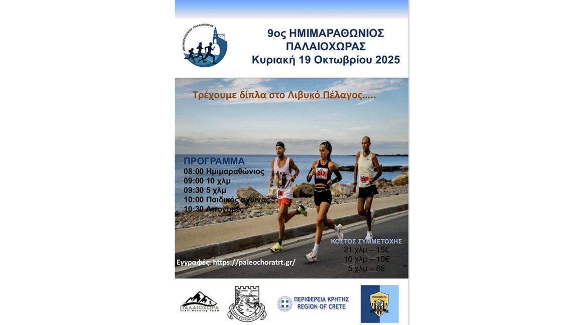 Την Κυριακή 19 Οκτωβρίου θα διεξαχθεί ο 9ος Ημιμαραθώνιος Παλαιοχώρας.