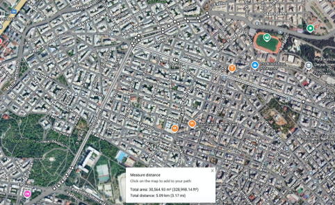 Η εκκίνηση των 5 και 10χλμ θα γίνει μαζί με κατεύθυνση προς την άνοδο της Παπάγου και κατόπιν οι δρομείς θα ακολουθήσουν τη διαδρομή που φαίνεται στον χάρτη. Η συγκεκριμένη διαδρομή είναι απόστασης 5χλμ. Οι δρομείς για τα 5χλμ θα την κάνουν μια φορά και για τα 10χλμ 2 φορές (εικόνα 1).