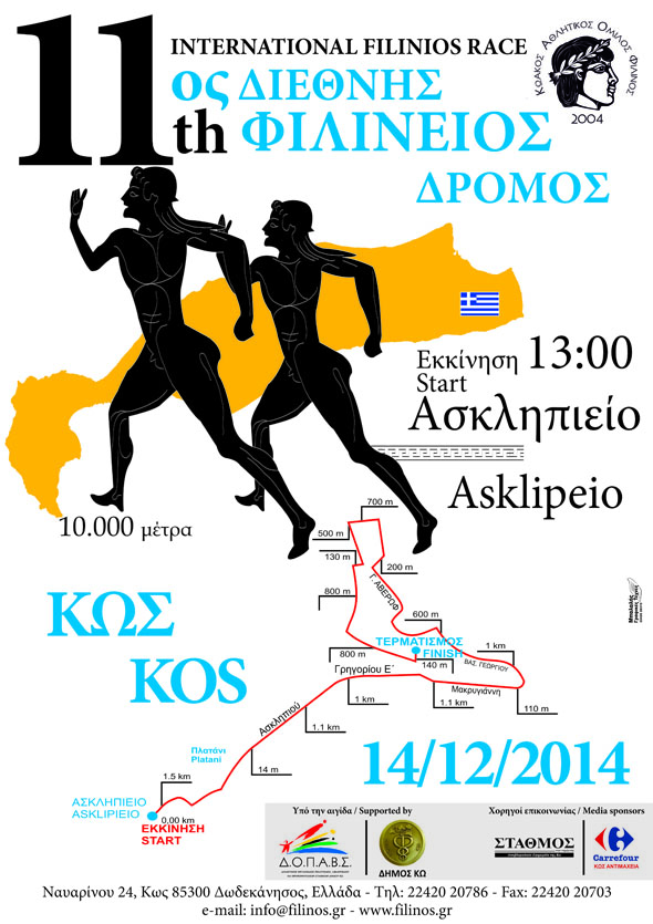 Την Κυριακή 14 Δεκεμβρίου ο Κοακός Αθλητικός Όμιλος Φιλίνος διοργανώνει τον 11ο Διεθνή Φιλίνειος Δρόμος απόστασης 10 χλμ. με εκκίνηση από το Ασκληπιείο της Κω στις 13:00.
