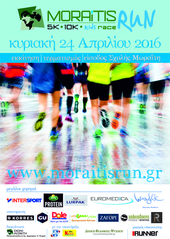 «Η Σχολή Μωραΐτη οργανώνει στις 24 Απριλίου 2016 το 3ο Moraitis Run στην περιοχή Ψυχικού – Φιλοθέης υπό την αιγίδα της ΕΑΣ ΣΕΓΑΣ Αθηνών και του Δήμου Φιλοθέης-Ψυχικού.
